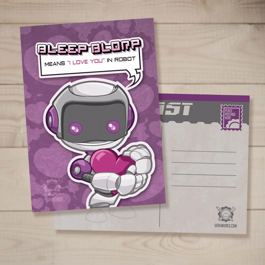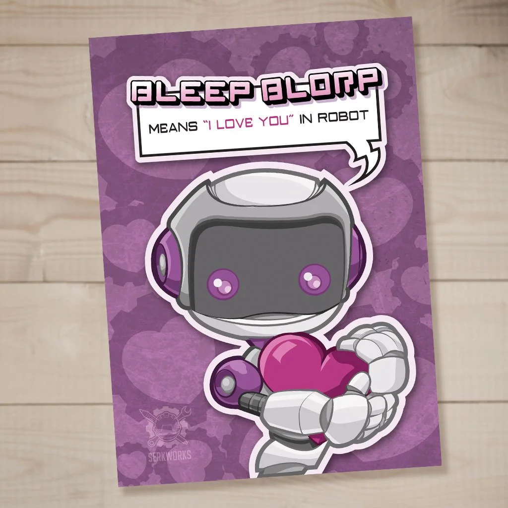 Robots need love too. Show someone you care with this beautifully designed card, also great for humans!