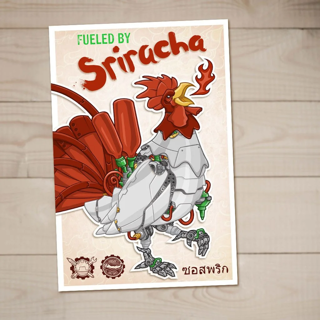 What's 40 stories tall and breaths fire? The Mecha Rooster! Fueled by Sriracha it is an unstoppable force to be reckoned with.