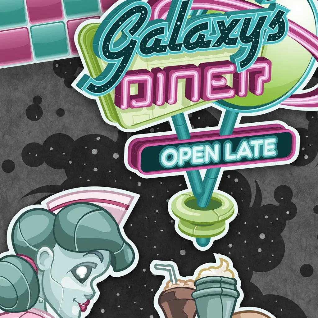 Welcome to Galaxy's, the coolest fly-in diner in the stratosphere. Hot off the grill burgers, crispy fries, frosty shakes, and delicious malts all delivered fresh to your flying car or hover board. Galaxy's top of the line robotic car hops are always online and ready to serve. Don't delay! Fly in today for a tasty treat. Tell 'em Galaxy sent you!