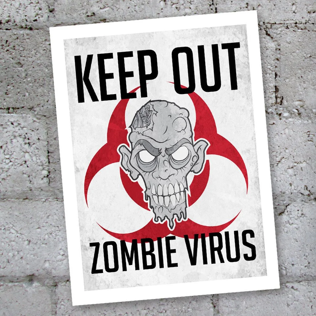 This warning sign will ward off trespassers of any inherent danger of a zombie outbreak. It's also a good way to alert unwanted meddlers not to disturb you while you're immersed in your favorite zombie games or zombie movie. Keep your privacy during the zombie apocalypse. Disclaimer: Does not work on zombies.