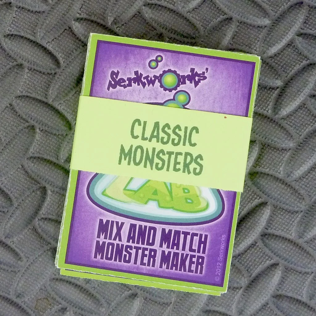 This complete set of 27 Mad Labs mix and match trading cards features some of your favorite classic monsters, all done Serkworks style.