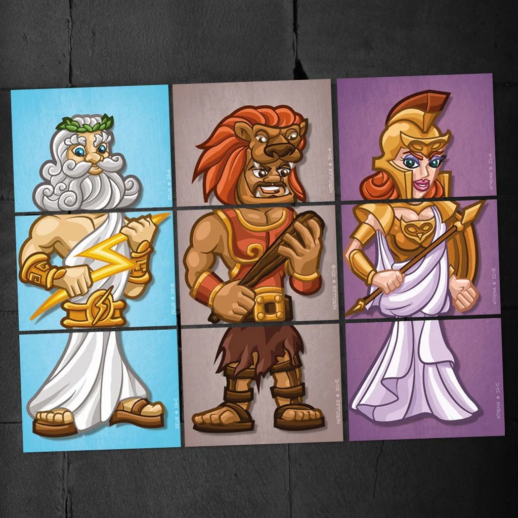 You are the Mad Scientist with the ability to assemble your own mythological gods and monsters. Piece together Zeus, Athena, Hercules, Poseidon, Medusa, The Minotaur, Hades, Cyclops and one of the Graeae sisters . Or scramble their body parts up to make your own original creation!