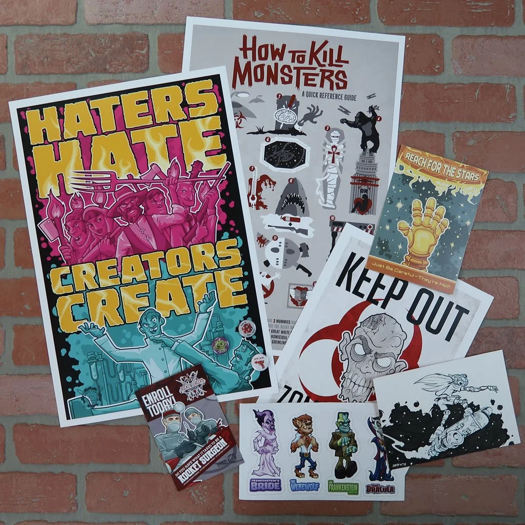 Do you like surprises? How about amazing deals? Our test tubes are crammed full of awesome Serkworks merchandise, including limited edition prints, retired designs, and great exclusives not available anywhere else. A $75+ value for just 30 bucks