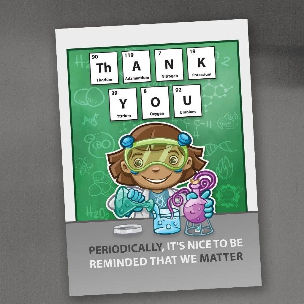 Show someone they matter with this chemistry themed thank you card.