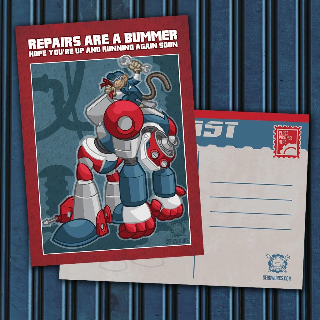 Serkworks Art Lab orders are packaged with care by our loyal robot hench-minions who are fueled by positive feedback and smiling faces.