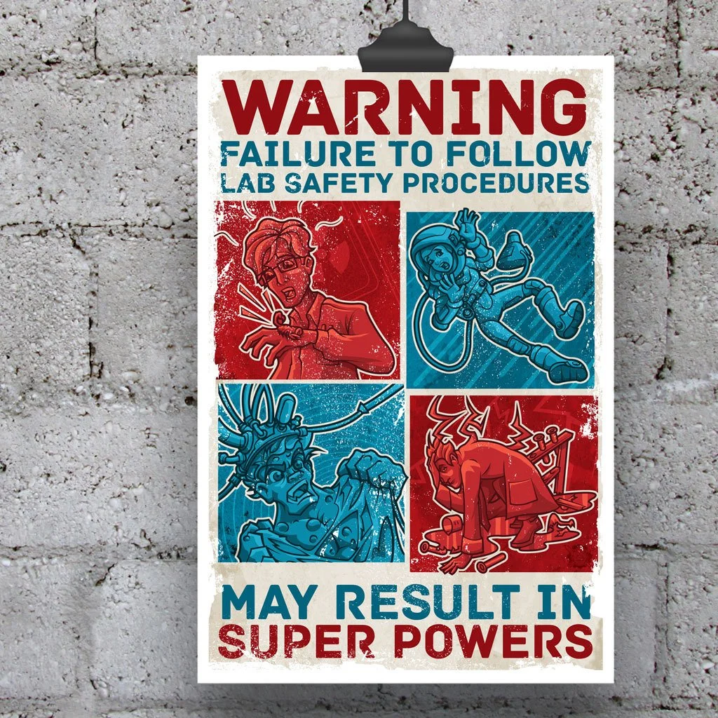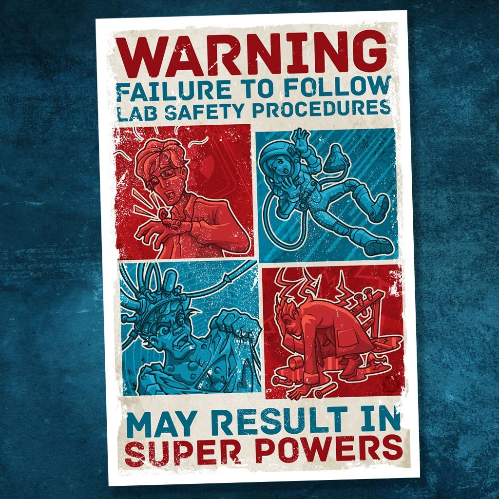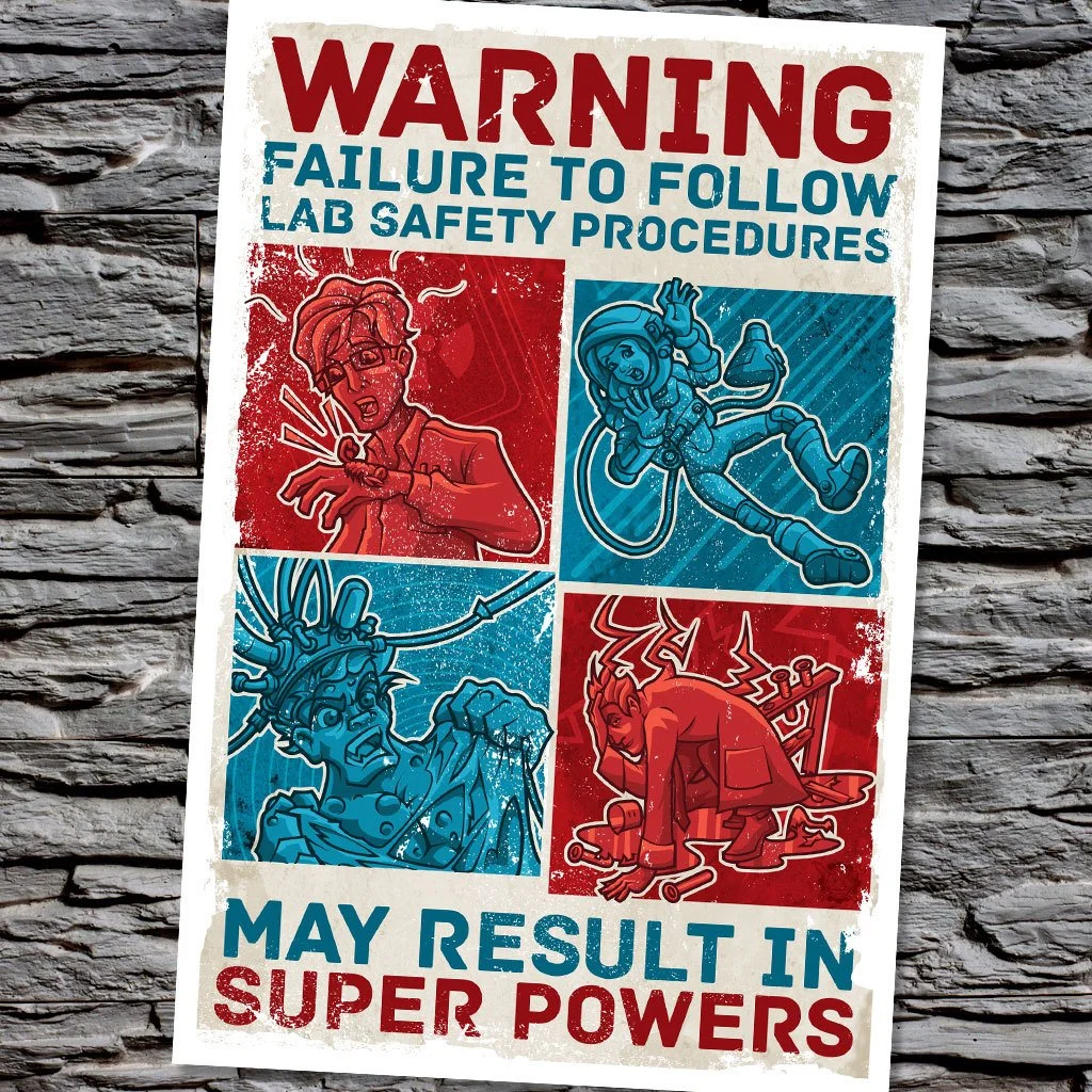 Super powers can be an unexpected side effect of many a science experiment gone wrong. In order to bring awareness to this growing problem, Serkworks Labs has issued this cautionary poster. Bold and to the point, we hope this design will shed some light on this important issue.
